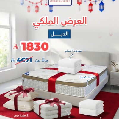 البكج الملكي نفرين مرتبة ولباد ومفرش فندقي 7 قطع