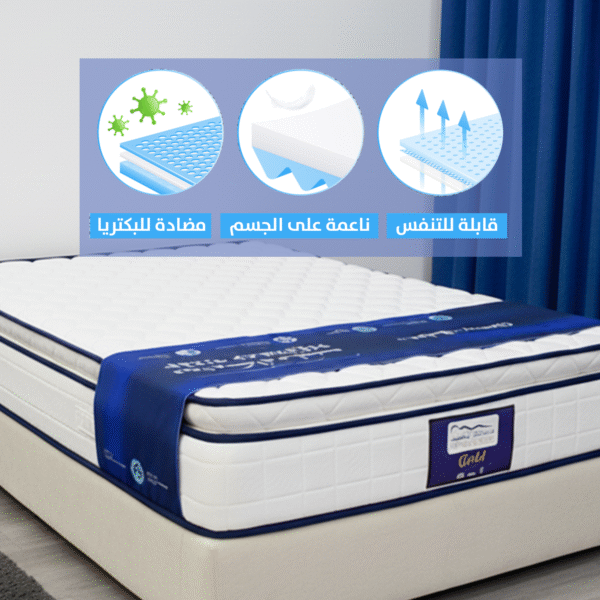 الباكج الملكي (نفرين) | باكج فاخر: مرتبة قوية مع لباد سميك، واقي مرتبة، وسائد قطنية، ومفرش فندقي