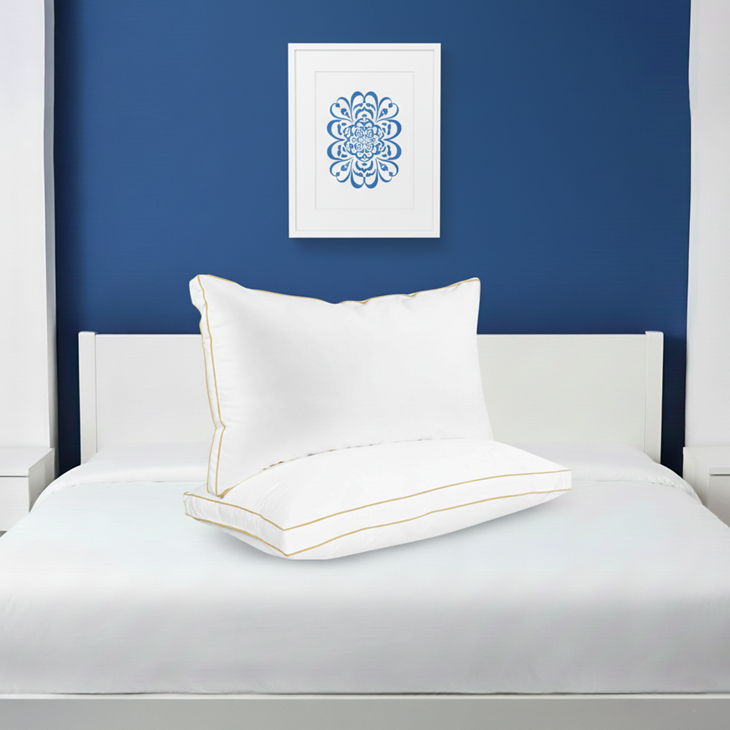| مخدات النوم | وسادة سرير بخط ذهبي مزدوج 100% قطن 75×50 سم – 800 جرام |