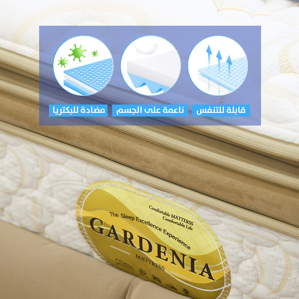 السعر يشمل ضريبة القيمة المضافةنوم فخم مع مرتبة نوم جاردينيا، تجمع بين قماش معالج وطبقة لاتكس صناعي وPocket Spring لدعم العمود الفقري وتحمل الأوزان العالية