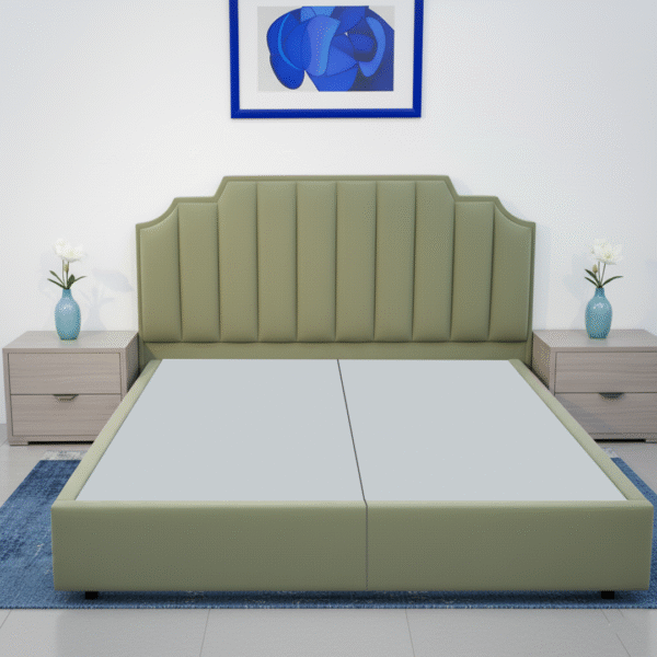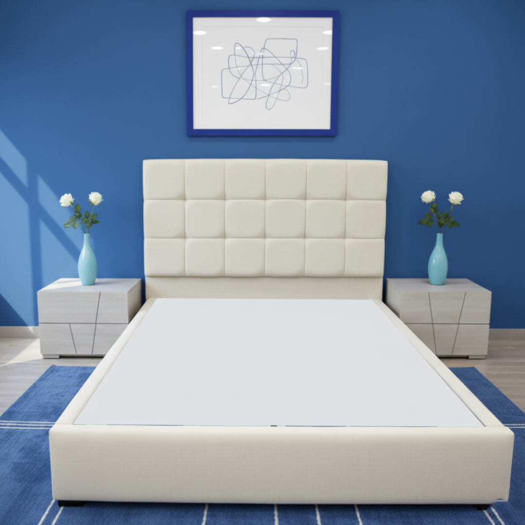 يتميز السرير بظهرية منجدة بعناية لتوفر دعمًا مريحًا للظهر والرقبة أثناء القراءة أو الاسترخاء، مع قاعدة (بوكس) مصنوعة من خشب سويدي عالي الجودة تضمن الثبات والمتانة لسنوات طويلة.