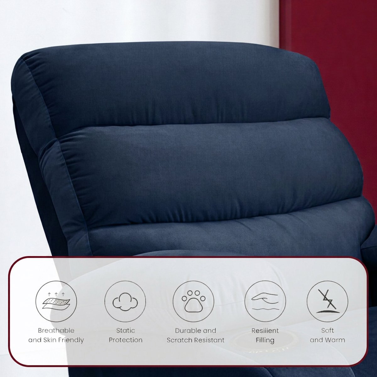 - • القماش: مخمل ناعم (Velvet)