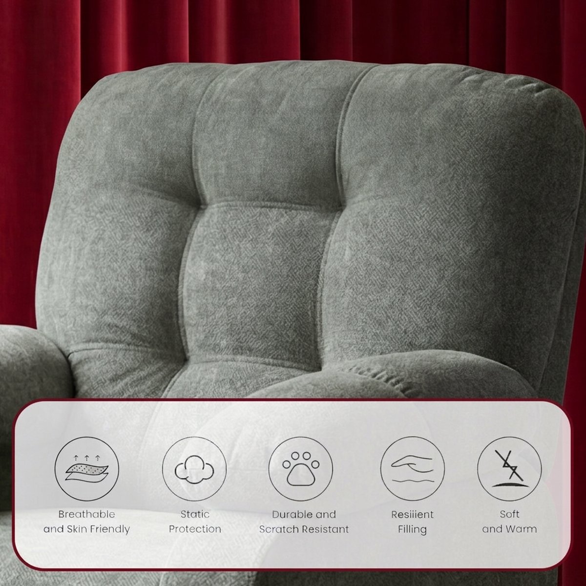 • • القماش: مخمل ناعم وعملي