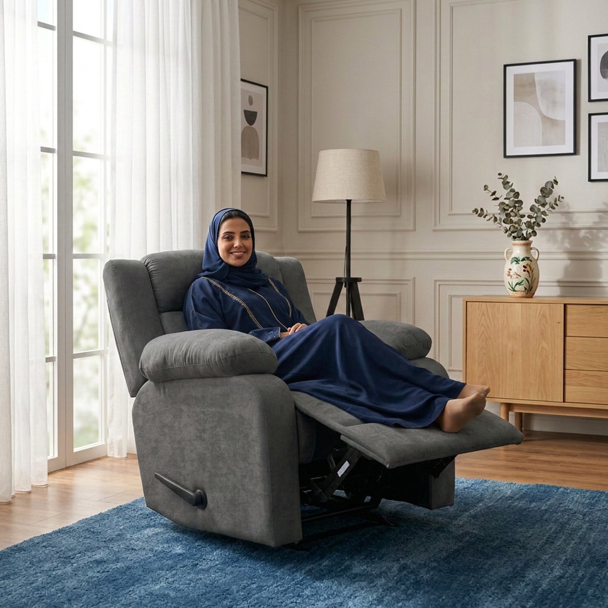 حياتك المليئة بالأعمال تدفعك للاسترخاء بعيدًا عن الضوضاء. سواء في غرفة الجلوس أو لتأسيس سينما منزلية مريحة، يمنحك كرسي سلطان الراحة والمرونة التي تستحقها بلمسة من الفخامة.