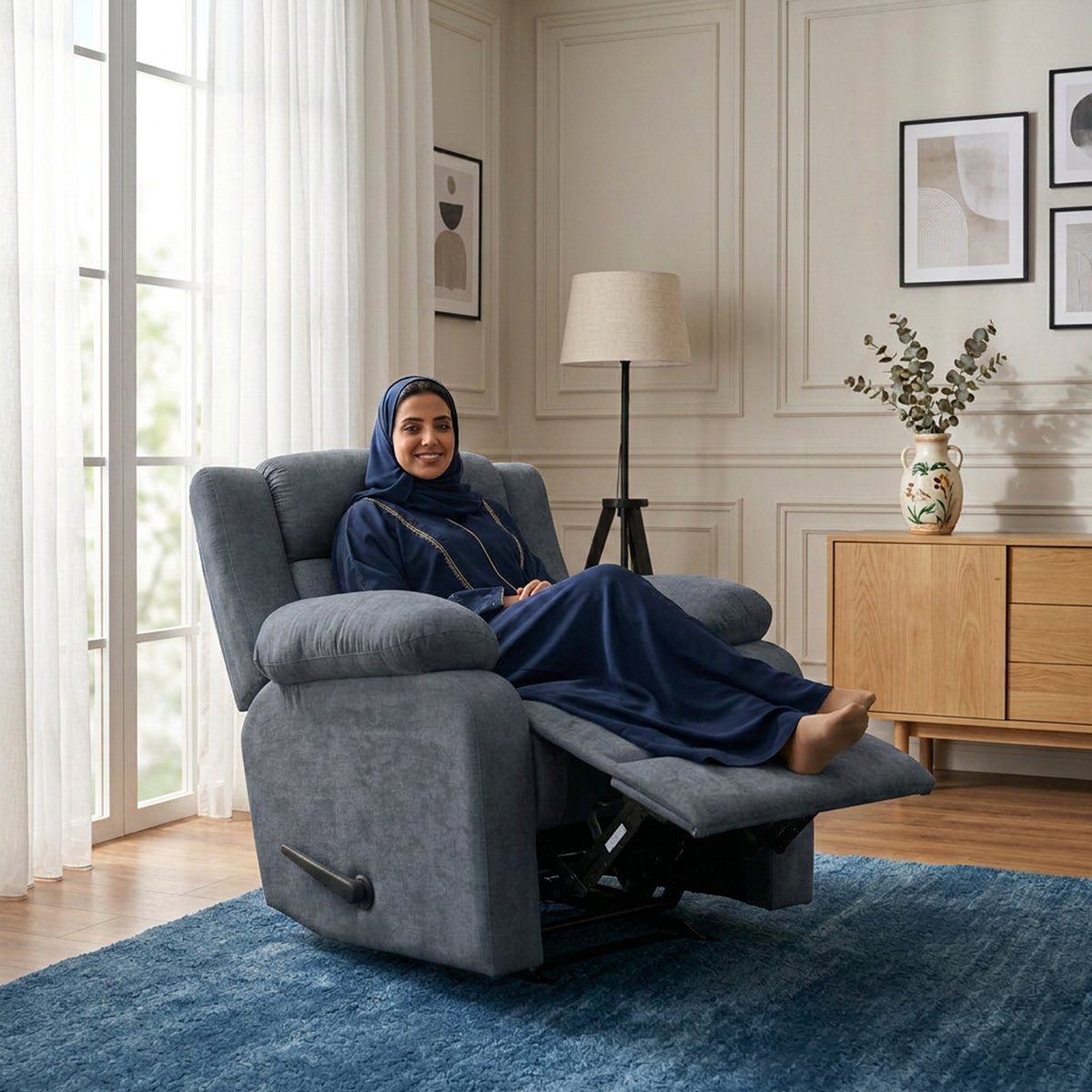 حياتك المليئة بالأعمال تدفعك للاسترخاء بعيدًا عن الضوضاء. سواء في غرفة الجلوس أو لتأسيس سينما منزلية مريحة، يمنحك كرسي سلطان الراحة والمرونة التي تستحقها بلمسة من الفخامة.