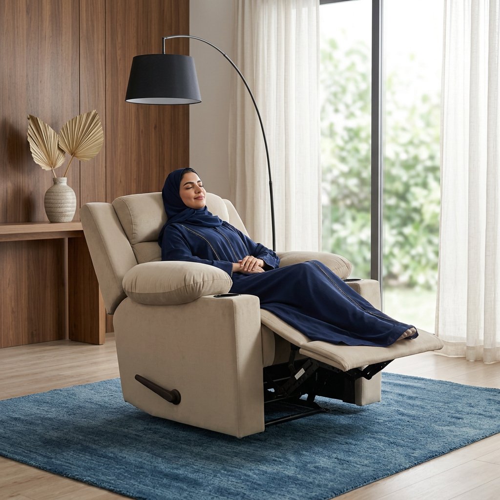 كرسي استرخاء فليكس مميز مع حامل أكواب – بيج – MK10