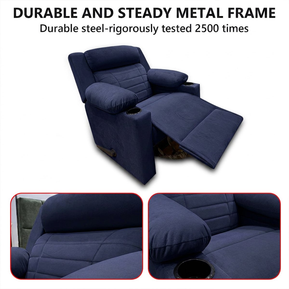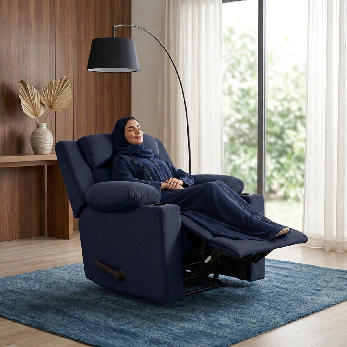 كرسي استرخاء فليكس مميز مع حامل أكواب – أزرق ملكي – MK10