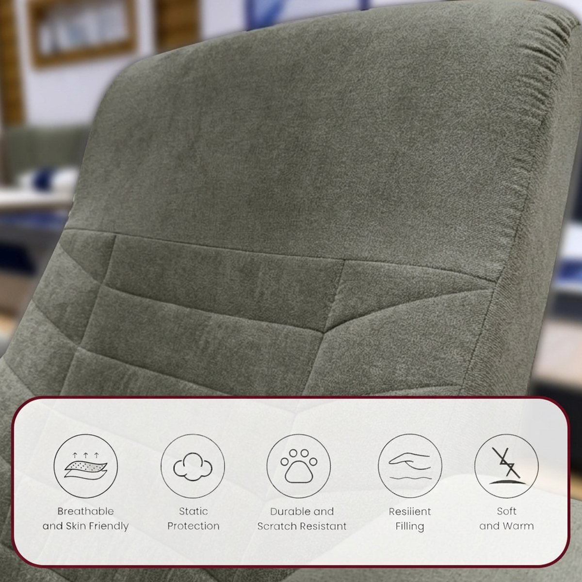 • • القماش: مخمل ناعم وعملي