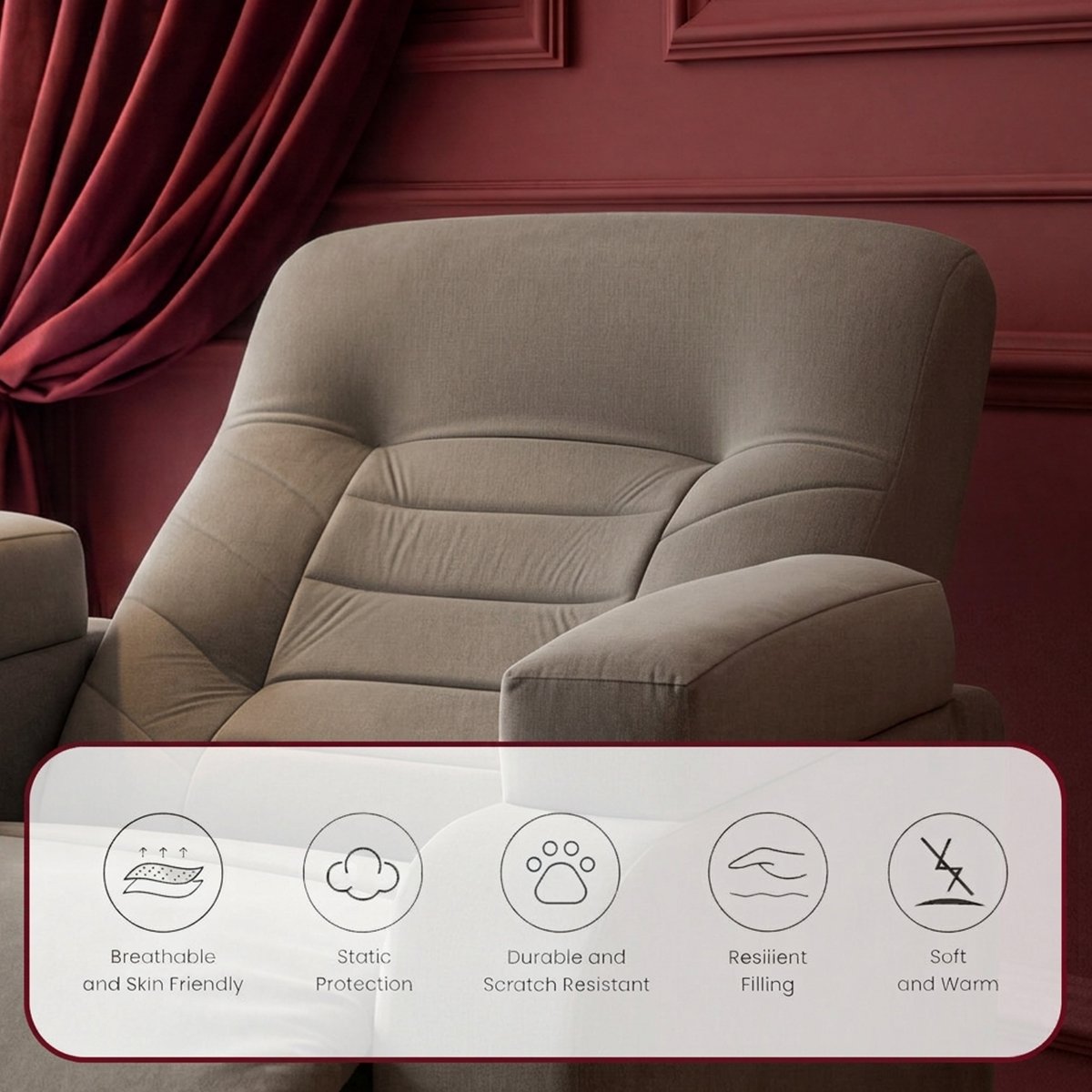- • القماش: مخمل ناعم (Velvet)
