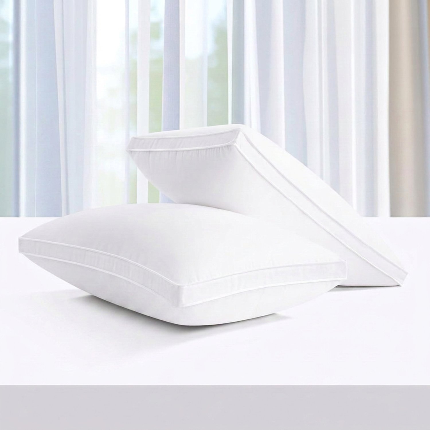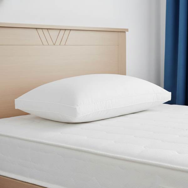 ارتقِ بتجربة نومك مع مخدة سرير بخط أبيض مزدوج 100% قطن، التي تجمع بين الراحة الصحية والتصميم الأنيق.