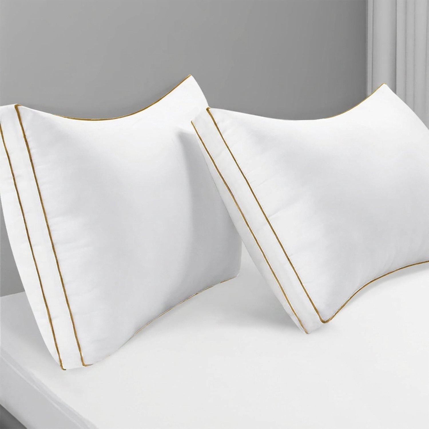 دلّل نفسك مع مخدة نوم بخط ذهبي مزدوج 100% قطن التي تجمع بين الدعم الطبي والأناقة العصرية.
