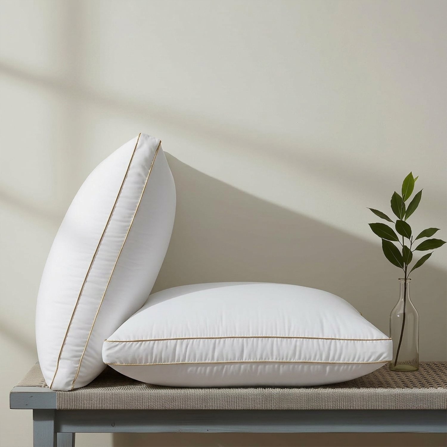 دلّل نفسك مع مخدة نوم بخط ذهبي مزدوج 100% قطن التي تجمع بين الدعم الطبي والأناقة العصرية.