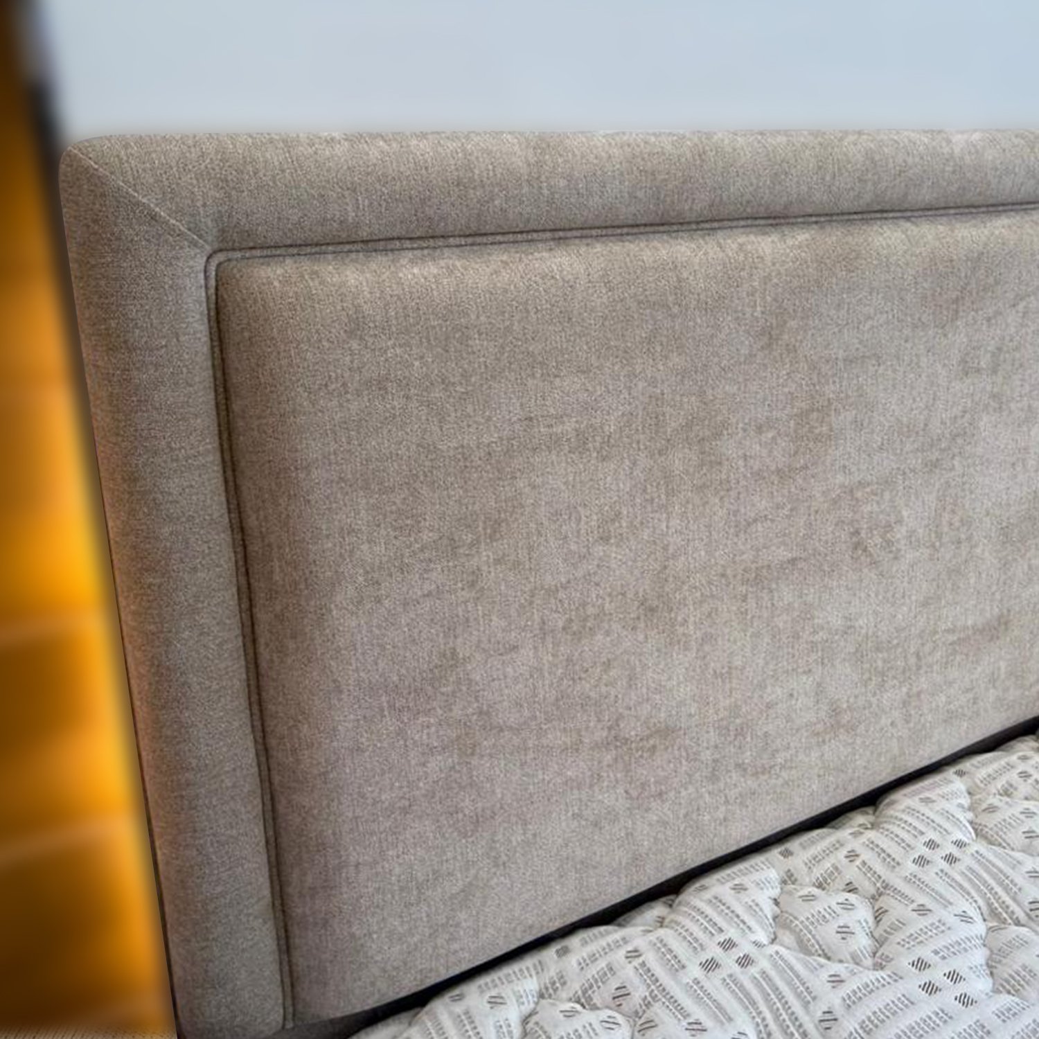 يتميز السرير بظهرية منجدة بعناية لتوفر دعمًا مريحًا للظهر والرقبة أثناء القراءة أو الاسترخاء، مع قاعدة (بوكس) مصنوعة من خشب سويدي عالي الجودة تضمن الثبات والمتانة لسنوات طويلة.