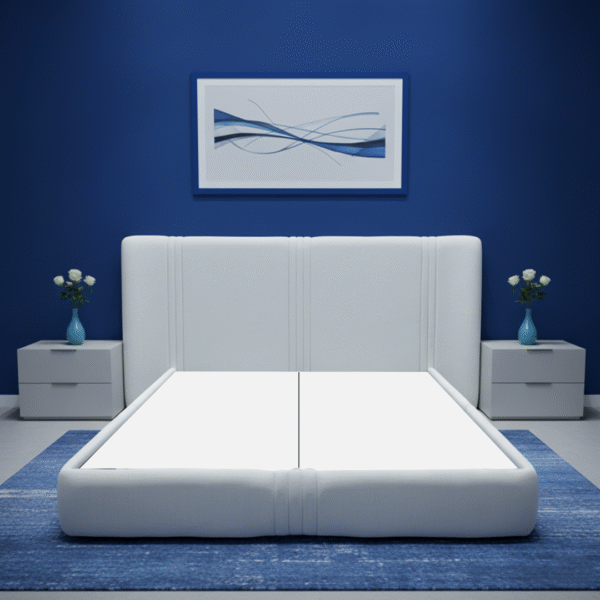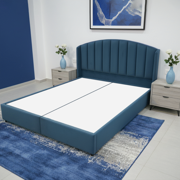 سكارليت | هيكل سرير منجد بالكتان – كحلي
